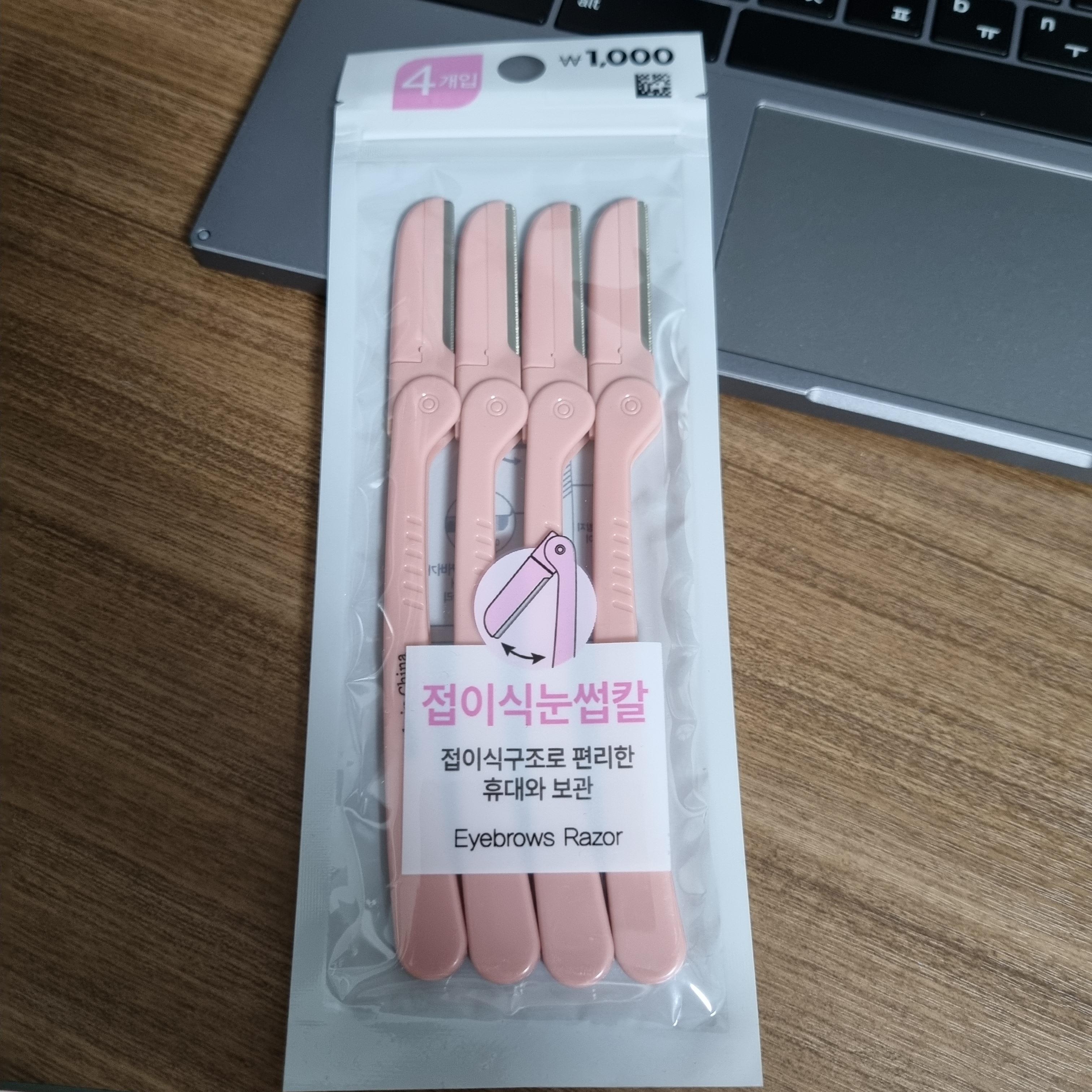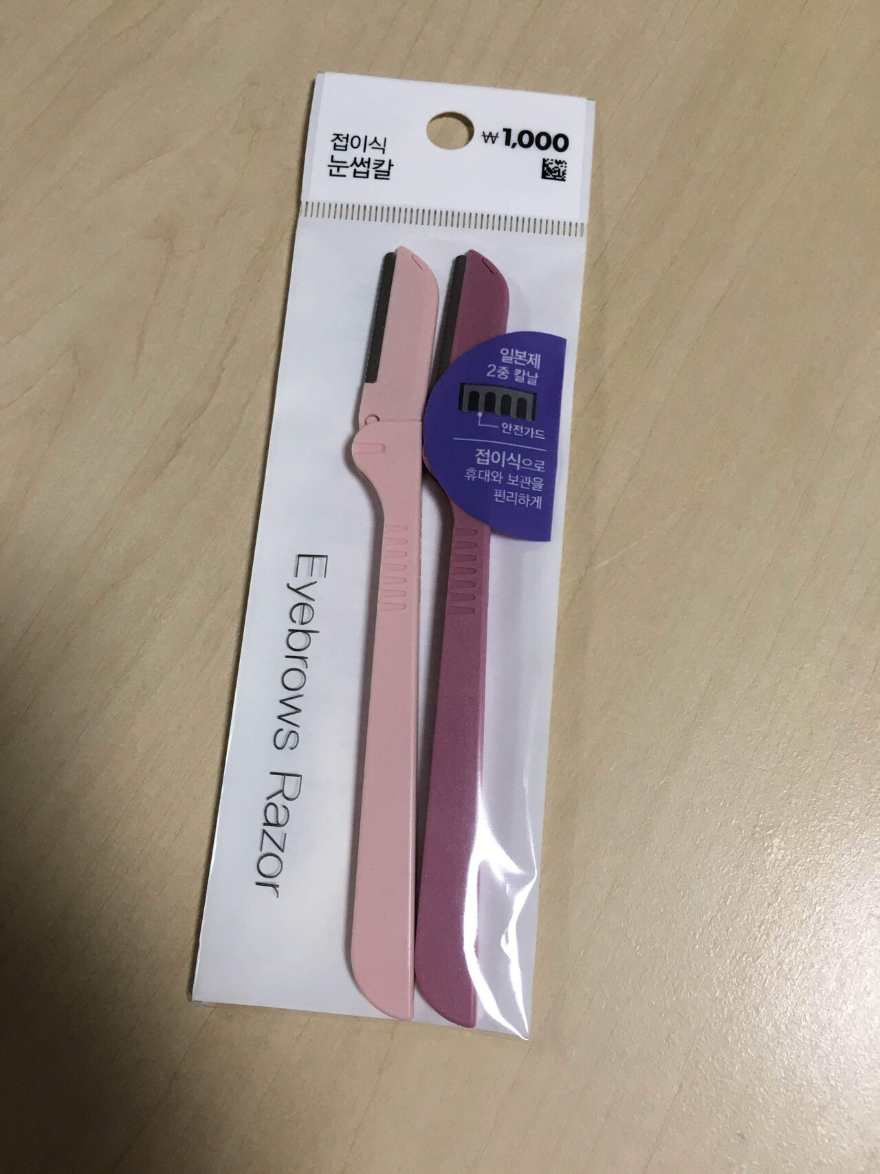먼저 접이식 눈썹 커터를 보겠습니다!천원에 2개나 주는 가성비 좋은 제품입니다 칼날은 일본식 양날을 사용했습니다 품번은 1012949 입니다. 눈썹 코너에서 찾을 수 있어요!