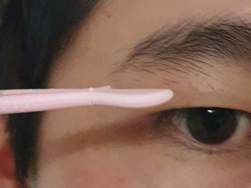 눈썹 다듬기 전 알로에젤과 같은 미끄러운 제품으로 쉐이빙젤처럼 사용하세요. 알로에 성분이 자극받지 않고 쉐이빙젤처럼 사용하실 수 있어요!