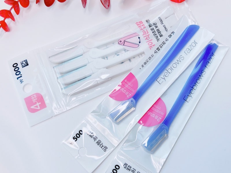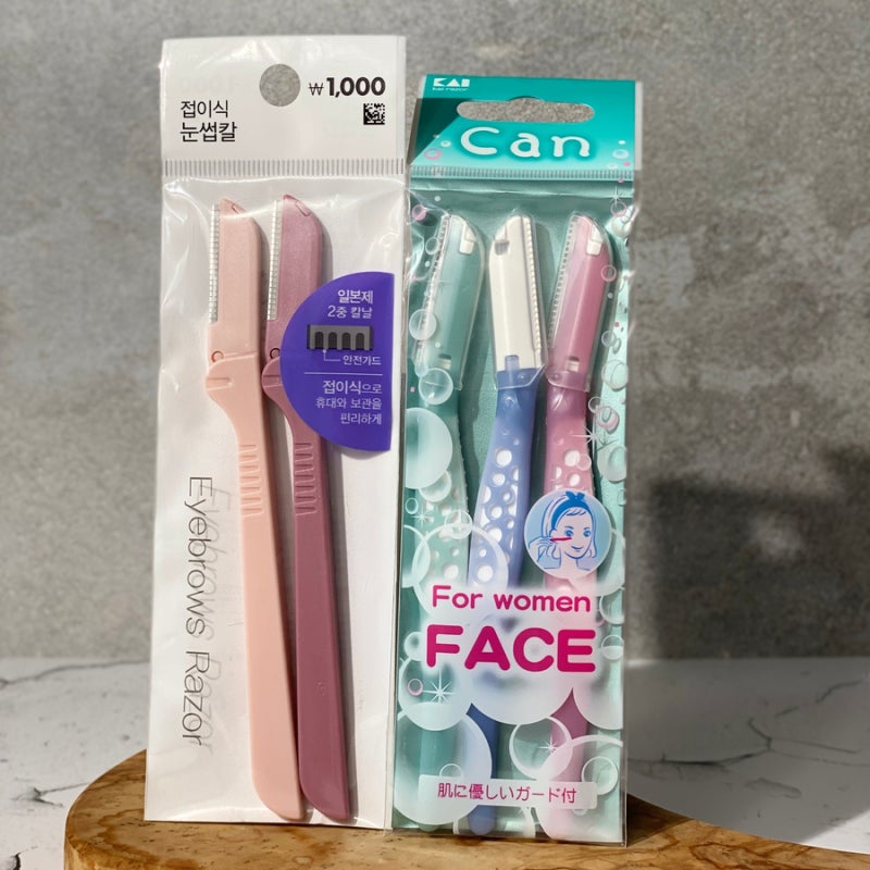 다이소에서 눈썹칼을 고르려니까 종류가 많더라구요! 그 중에서 가장 유명한 접이식 눈썹 커터를 준비했고, 일본 제품에서는 얼굴 면도기라는 제품을 구입한 가격은 각각 3천원, 천원입니다.