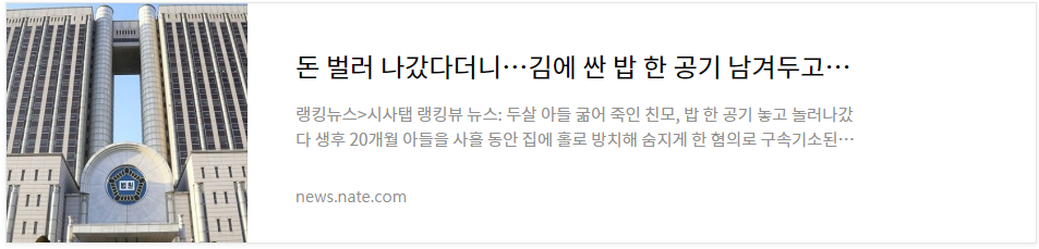 안타까운 것은 이 아이가 이렇게 벌을 받아도 다시 살릴 수 없고, 더 안타까운 것은 법정에서 사형에 해당하는 형벌이 절대 내려지지 않을 것이라는 점입니다.